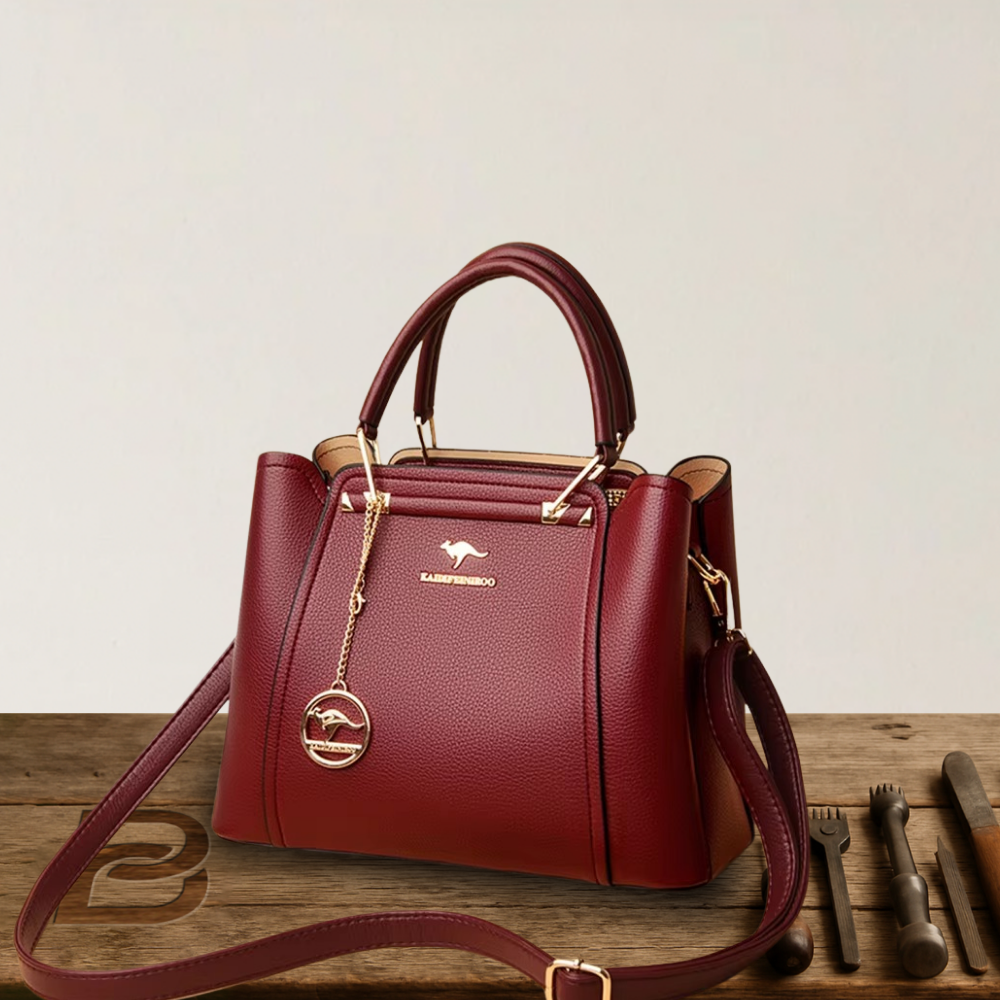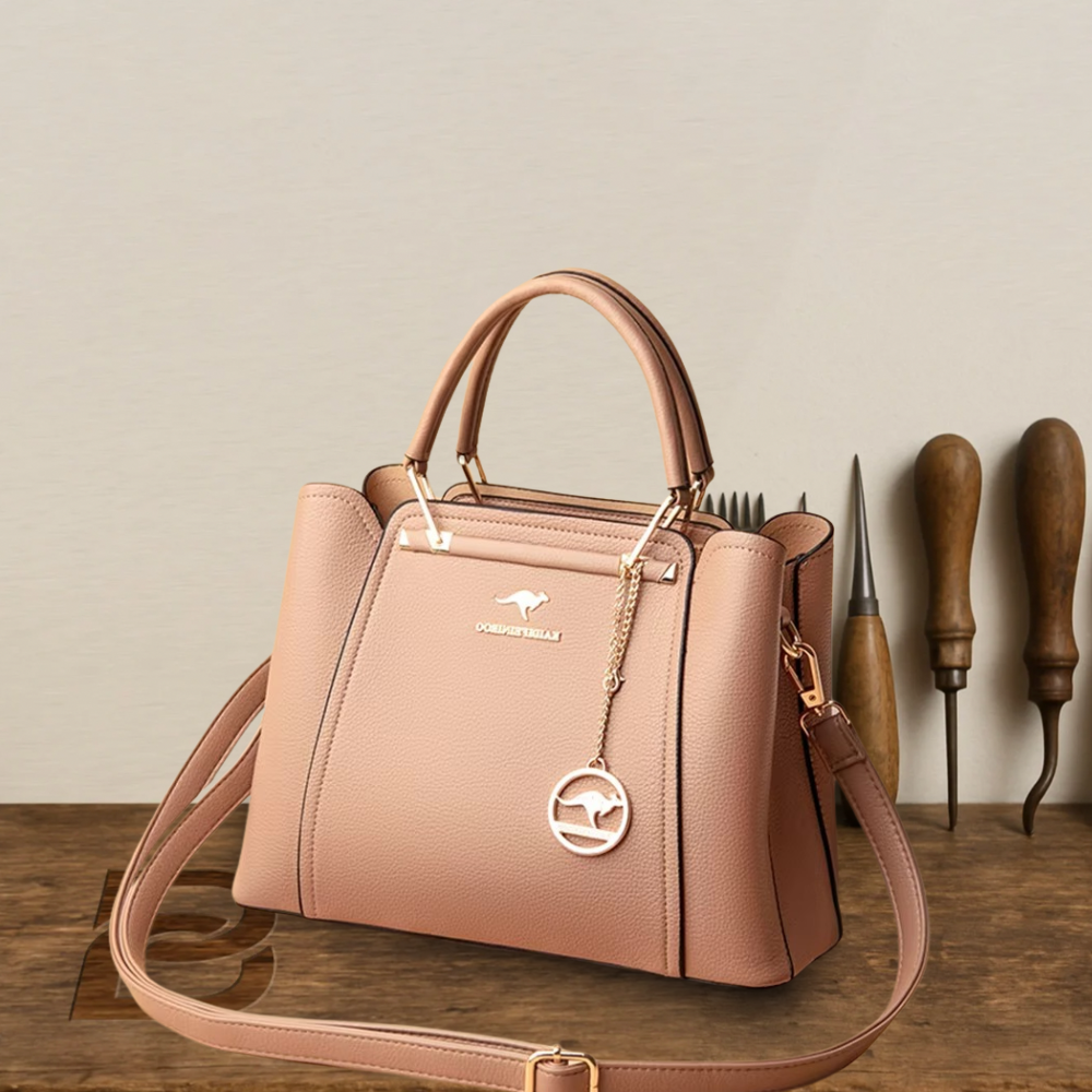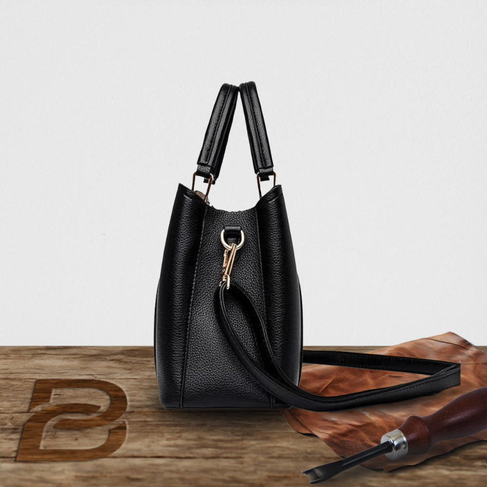 Exuding sophistication and timeless charm, this elegant premium structured leather handbag is meticulously crafted from top-grade leather with a luxurious, smooth finish. Its firm and well-defined silhouette maintains its shape effortlessly, offering a polished look that complements both professional and refined everyday outfits. The exterior features clean lines, minimal embellishments, and high-quality stitching, accentuated by subtle metallic hardware that adds just the right touch of understated glamour.