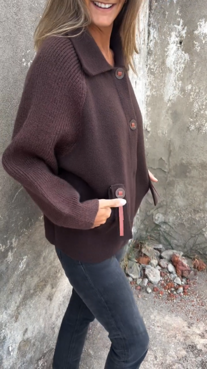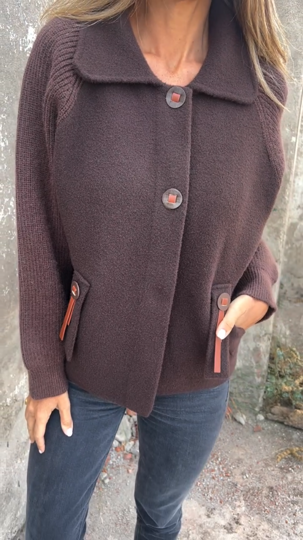 Buttoned patchwork sweater wool coat
