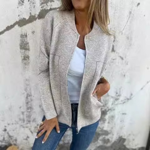 Casual zipper solid color jacket
