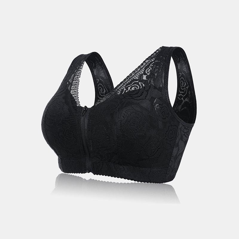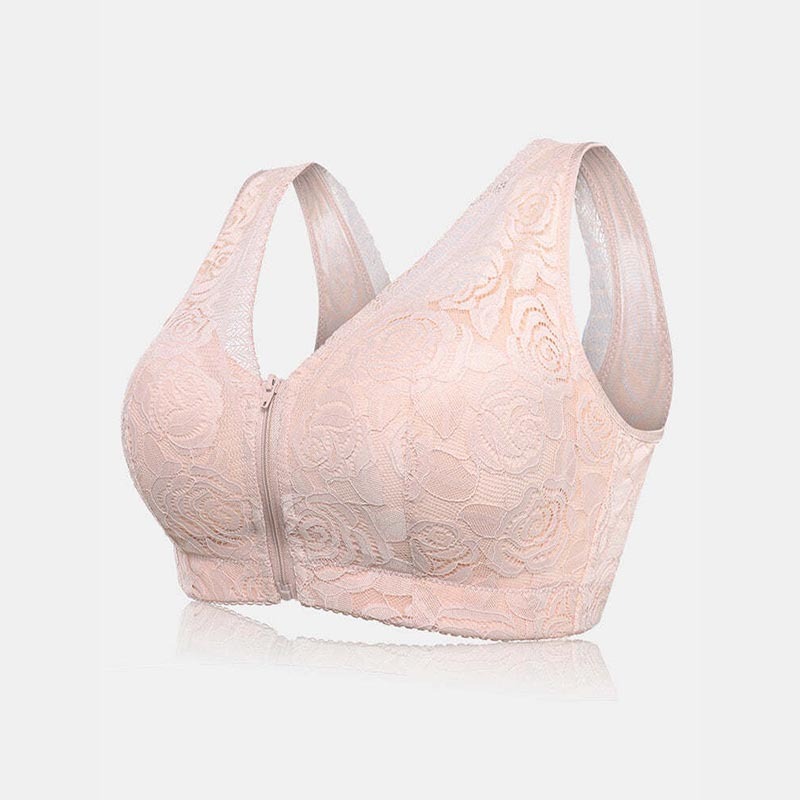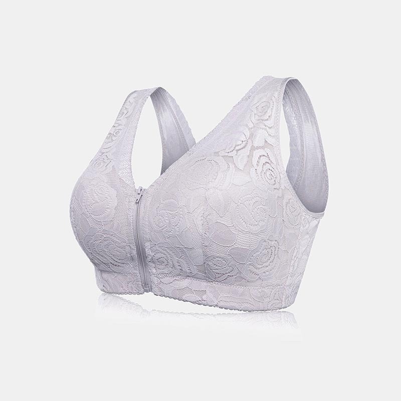 Mother's Day Gift 40% Off 🔥-Front Zipper Lace Full Coverage Wire-Free Bra-Plus Size