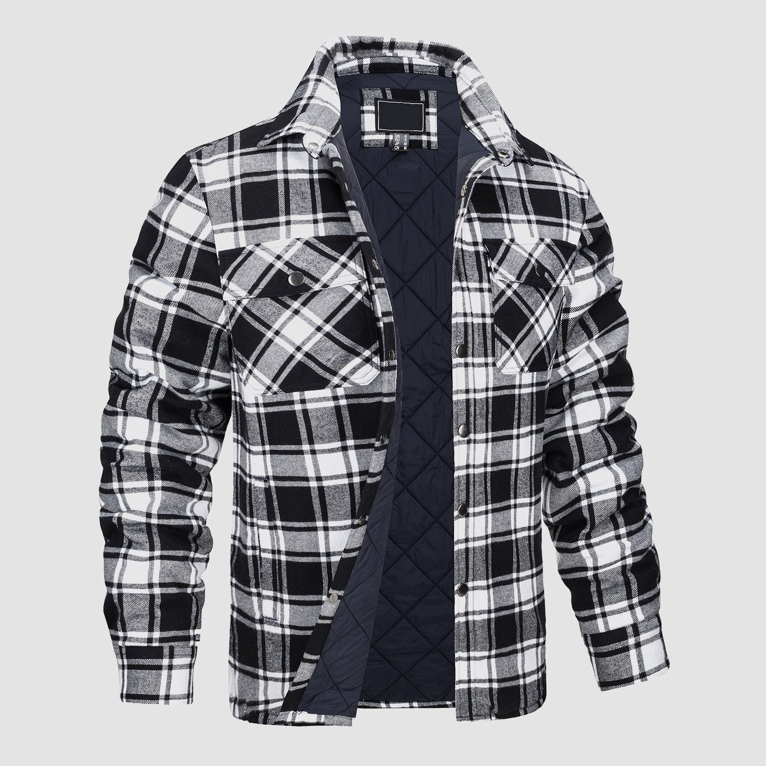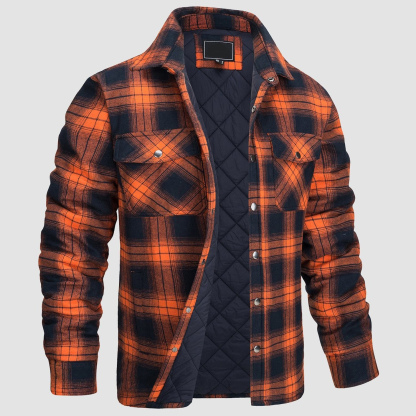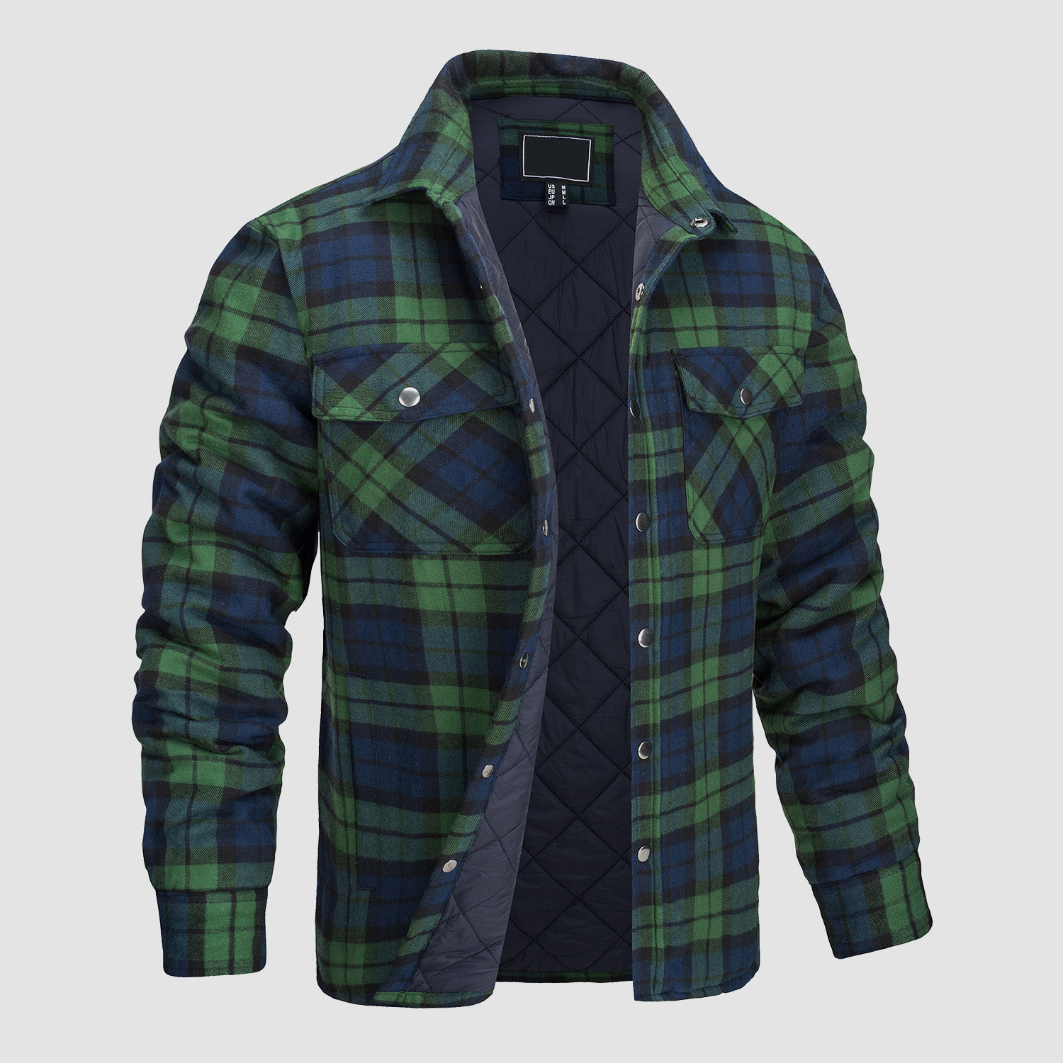 Men's Winter Padded Jacket - Warm Quilted Flannel Shirt Jacket with 5 Pockets for Outdoor and Casual Use