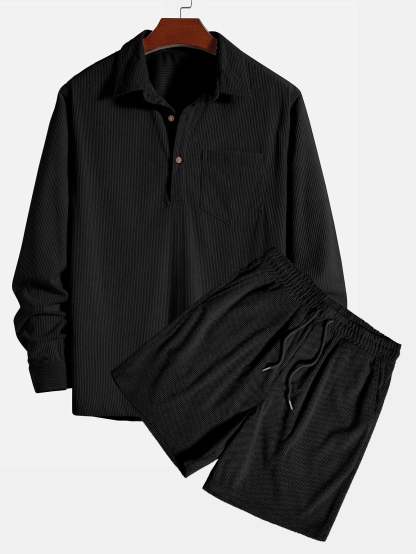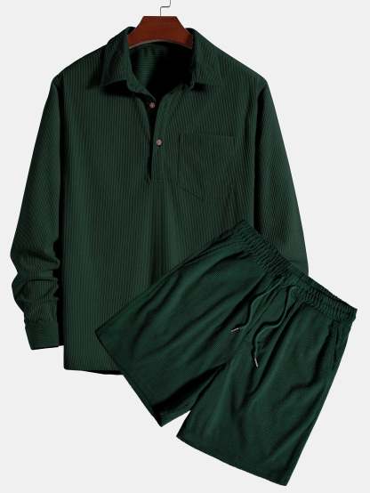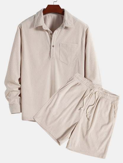 Long Sleeve Polo Collar Corduroy Shirt & Shorts