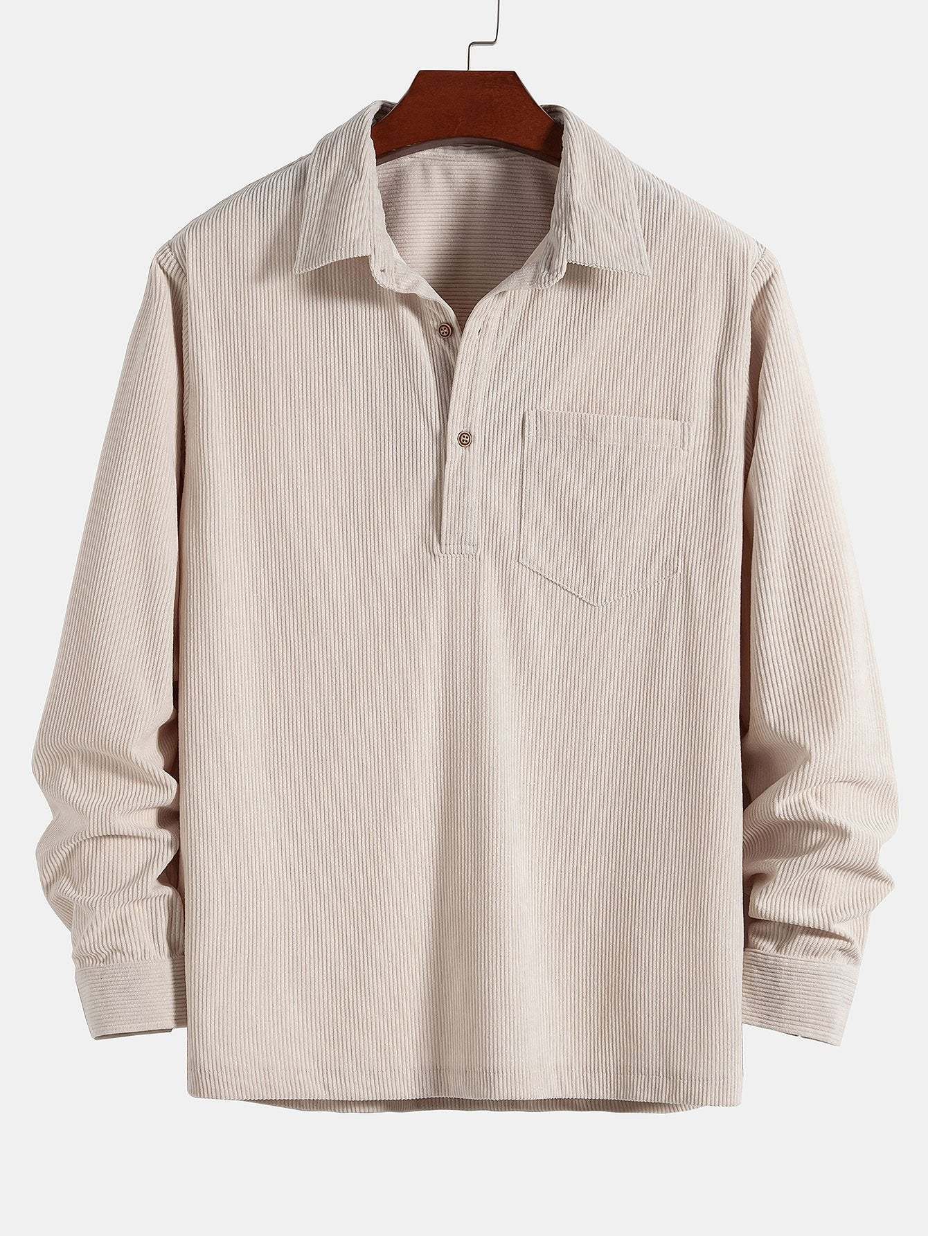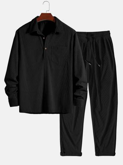 Long Sleeve Polo Collar Corduroy Shirt & Straight Leg Corduroy Pants