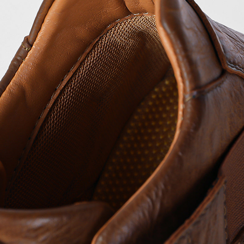 - HIGH QUALITY : The upper is made of premium leather with clear texture and used soft and double handmade sewing so that the hand stitching zipper shoes can be durable and firm.