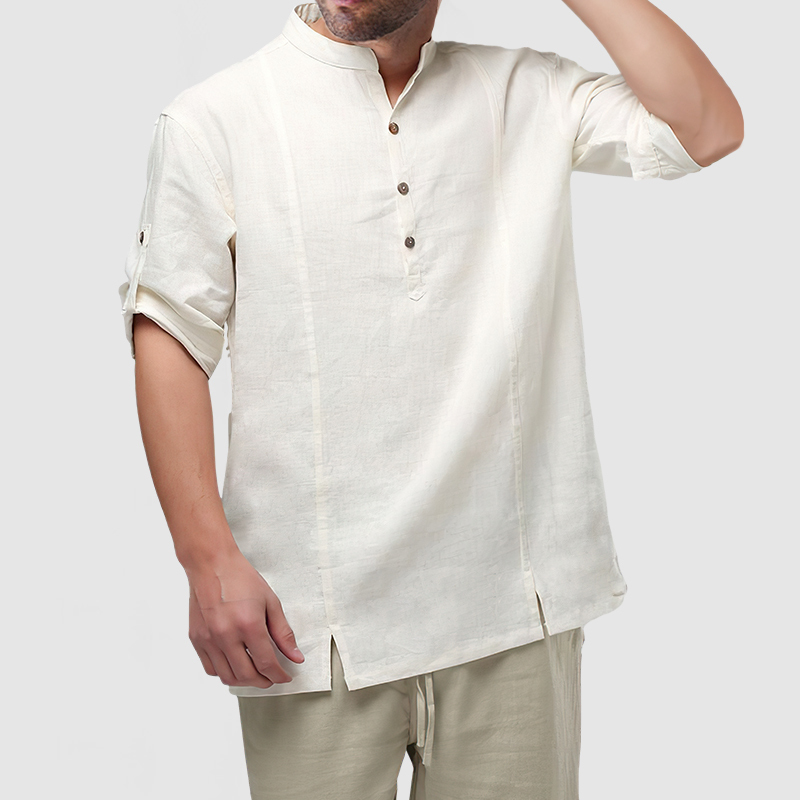 This shirt has a business-casual style element and is made from Cotton And Linen, which is extremely breathable. The shirt is made from a classic soft cotton and linen fabric that is comfortable and classy to wear. The cut-out design on both sides makes the shirt no longer monotonous, revealing a lazy casual style in a gentleman. Whether for outdoor sports, leisure activities or social gatherings, this shirt will keep you elegant and gentlemanly for a long time.