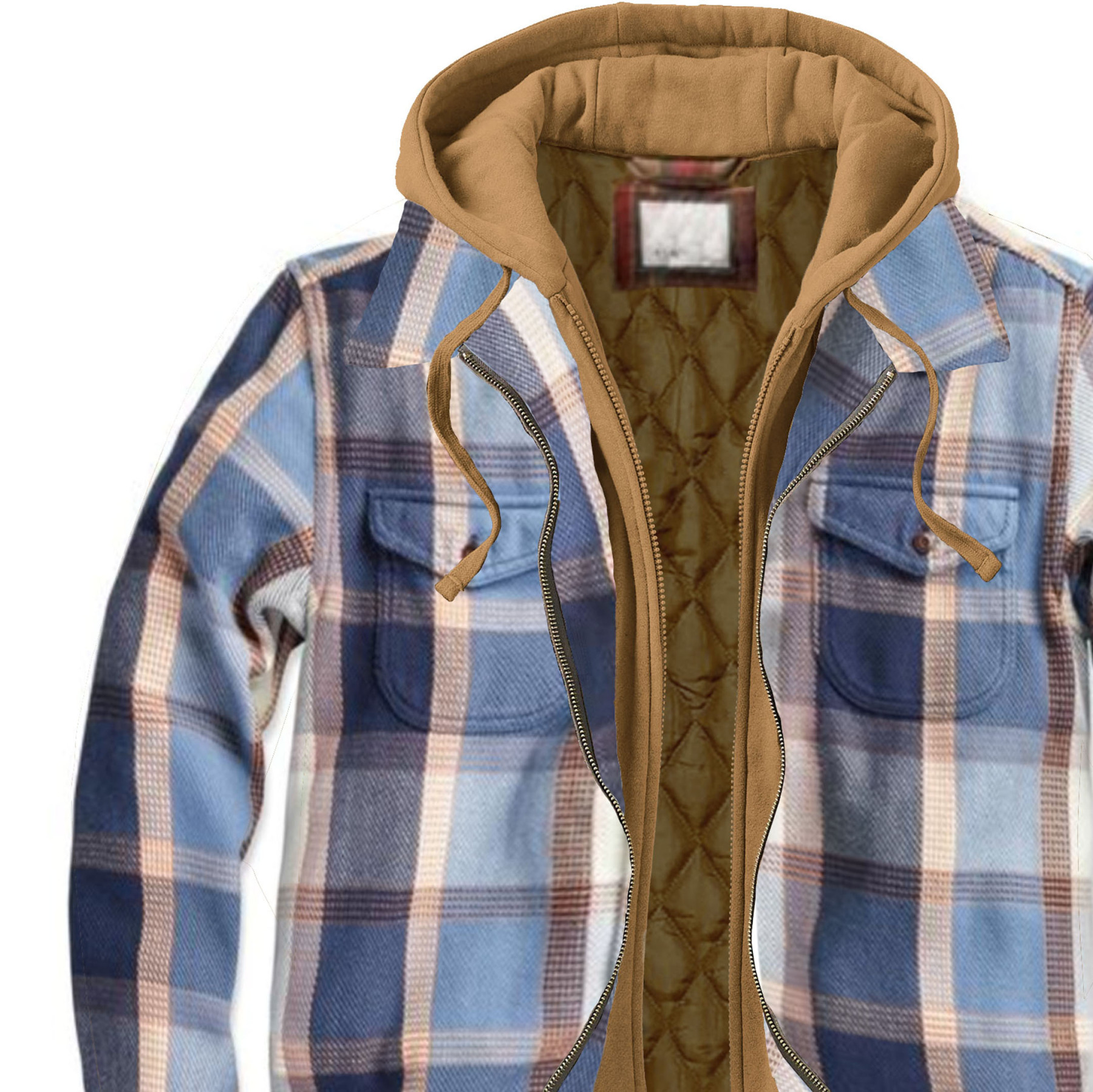 Men's Fall & Winter Casual Checkered Hooded Fake Two Casual Jackets
