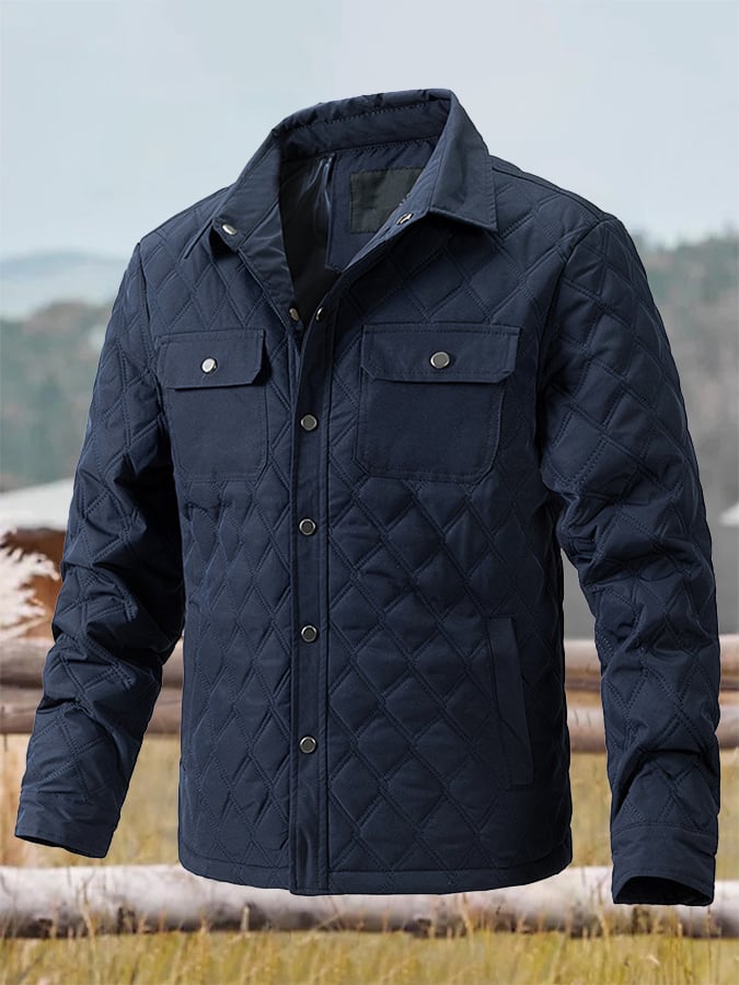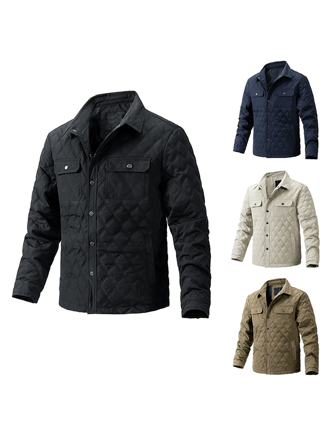 Men's Retro Diamond Pleated Cotton Multi-Pocket Casual Cotton Jacket