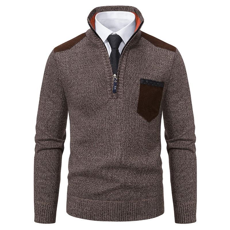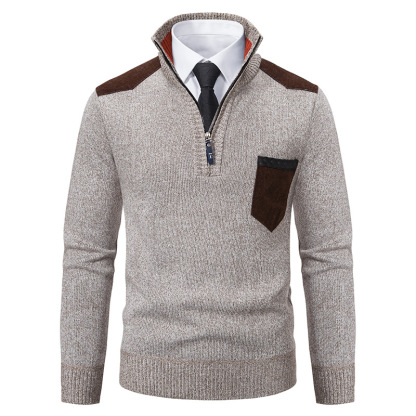 Men's Retro Zipper Stand Collar Contrast Color Pullover Sweater
