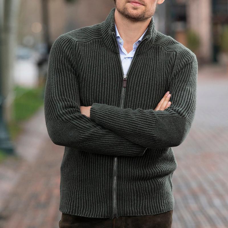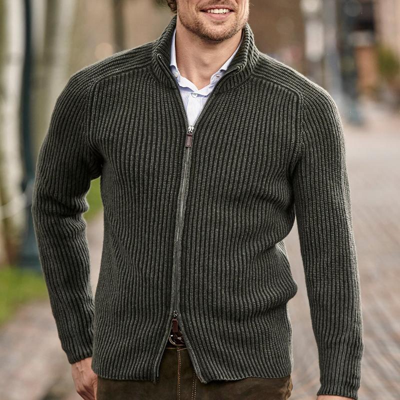 Men's Solid Color Stand Collar Knitted Cardigan