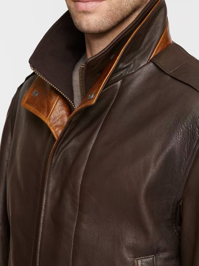 Men's Stylish Open Pocket Button Design Warm Leather Jacket