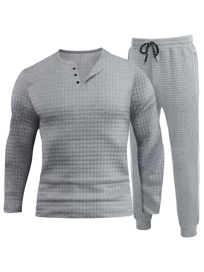 Men's Waffle Jacquard Casual Sport Knit Top Sweatpants Set