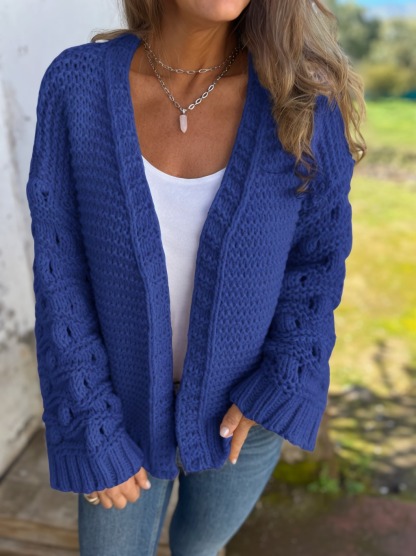 2025 New Fashion Knit Solid Color V-neck Long-sleeved Cardigan