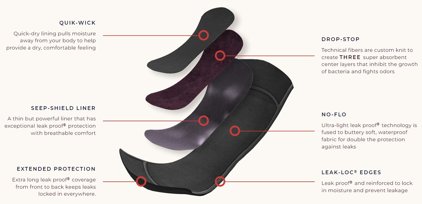 The leakproof brief by Proof can be used to replace or back up tampons and cups, or replace pads and pantyliners. Proof undies pull liquid into the absorbent core, so layering a pad over the gusset will not allow Proof to do it’s *super absorbent, moisture wicking* magic.