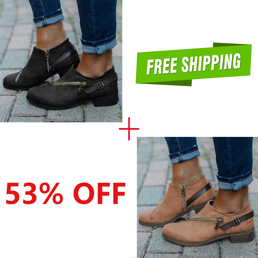 LAST DAY 50% OFF- Women Casual Retro Round Toe Low Heel Zipper Boots