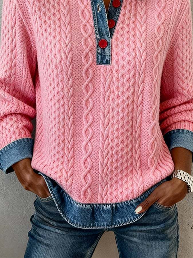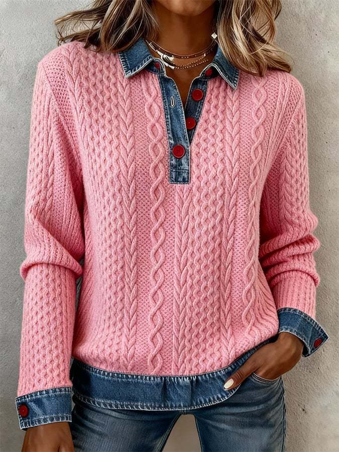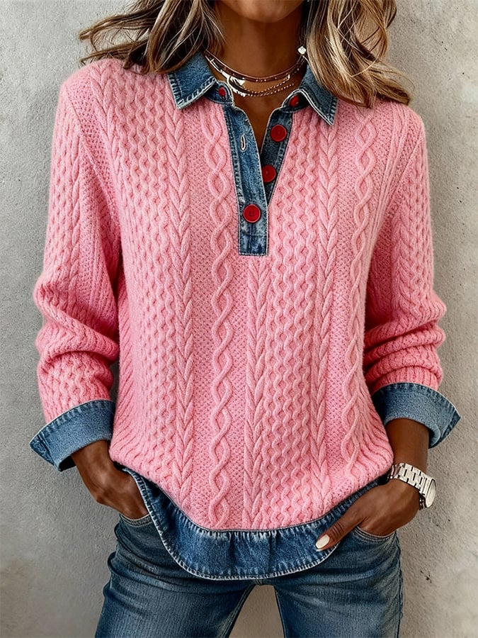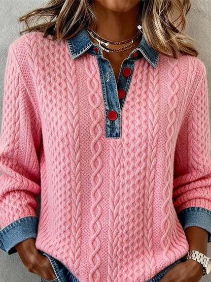 Women's Casual Collared Color Block Sweatshirt
