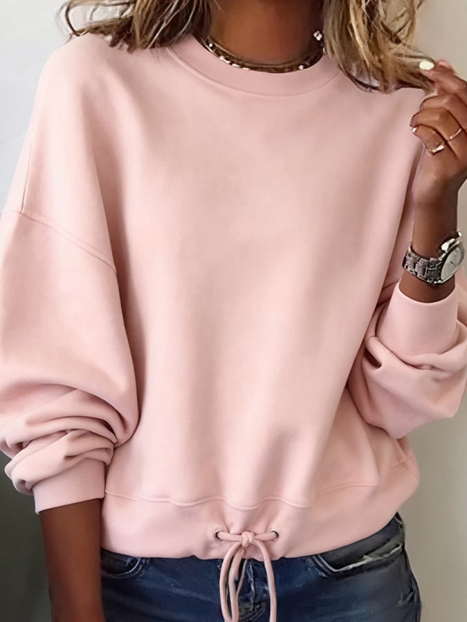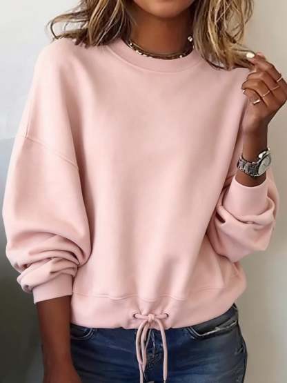 Women'S Casual Round Neck Solid Color Loose Pullover Sweatshirt