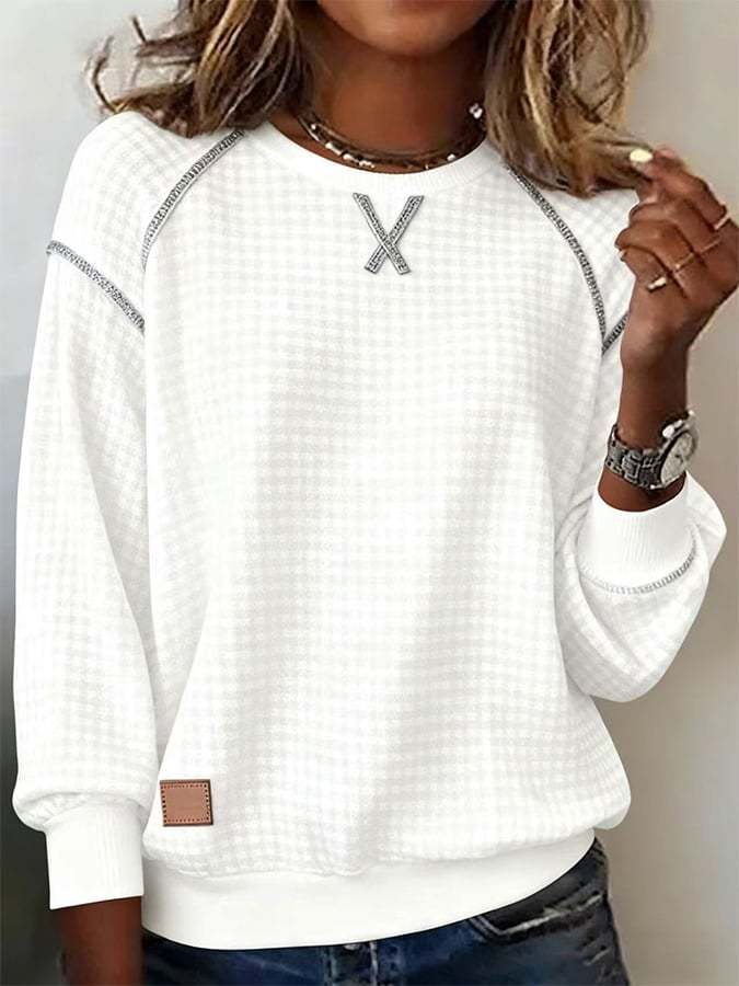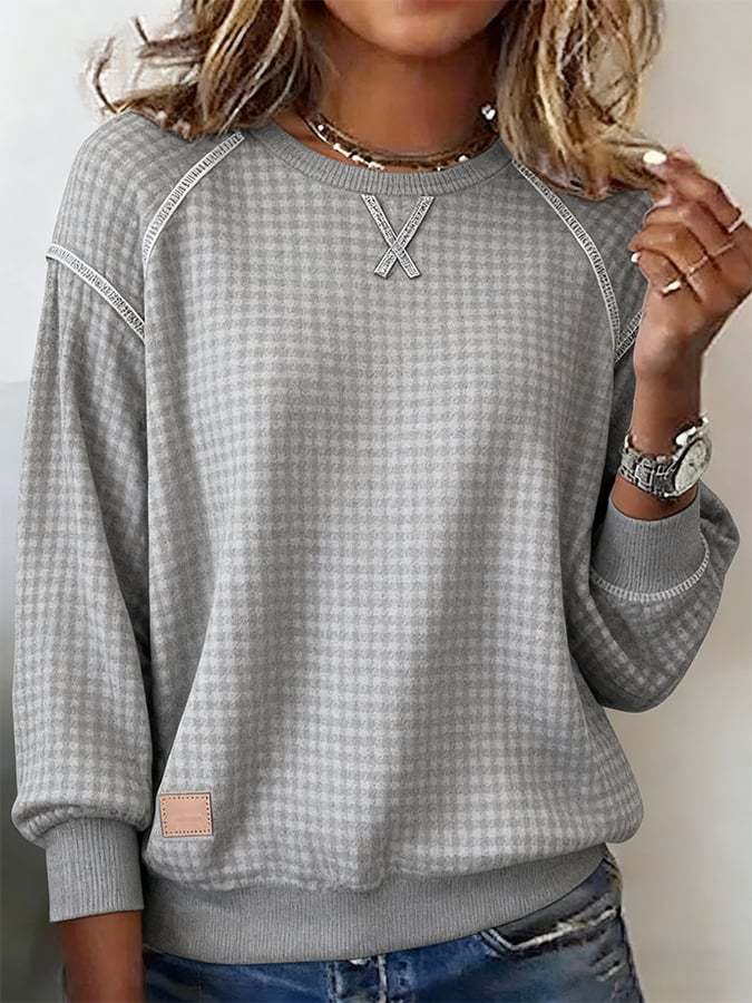 Women's Crew Neck Long Sleeve Waffle Sweatshirt