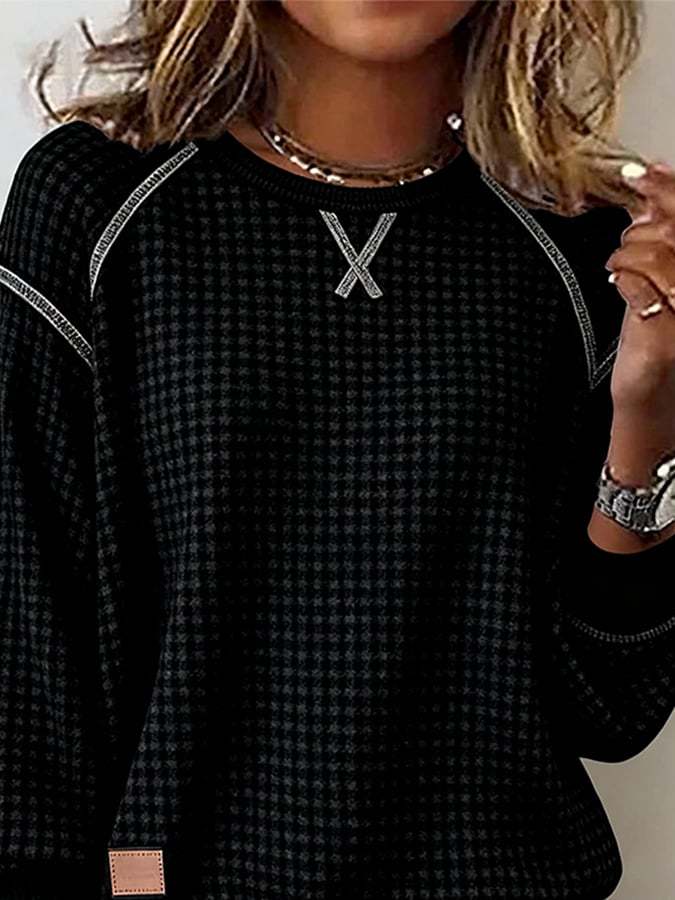 Women's Vintage Plaid Art Print Casual Sweater