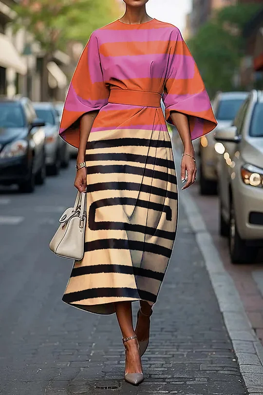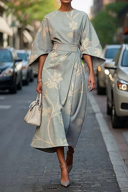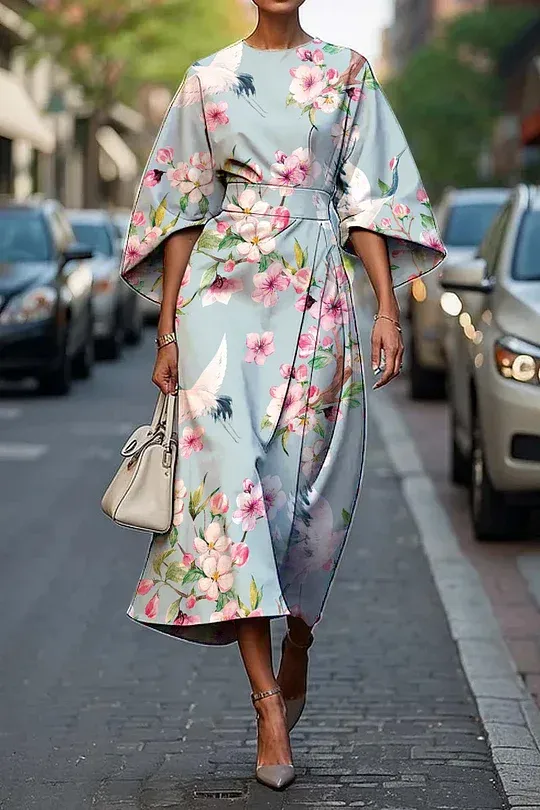 Women's Vintage Elegant Floral Print Midi Dress