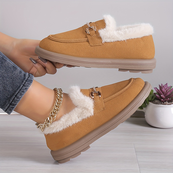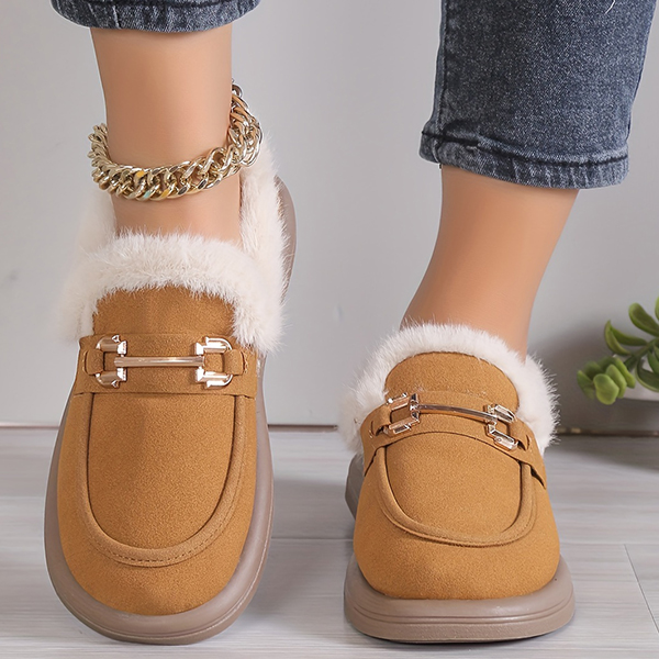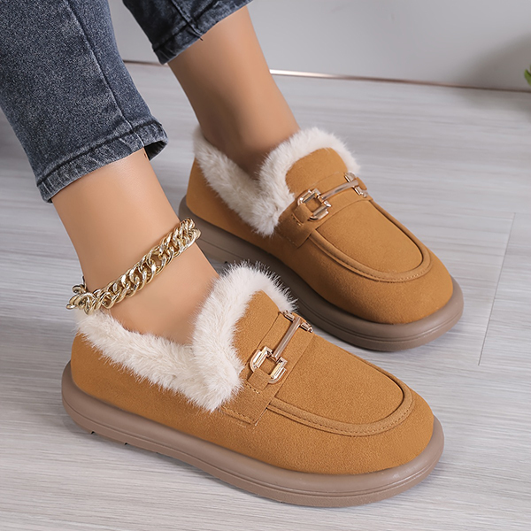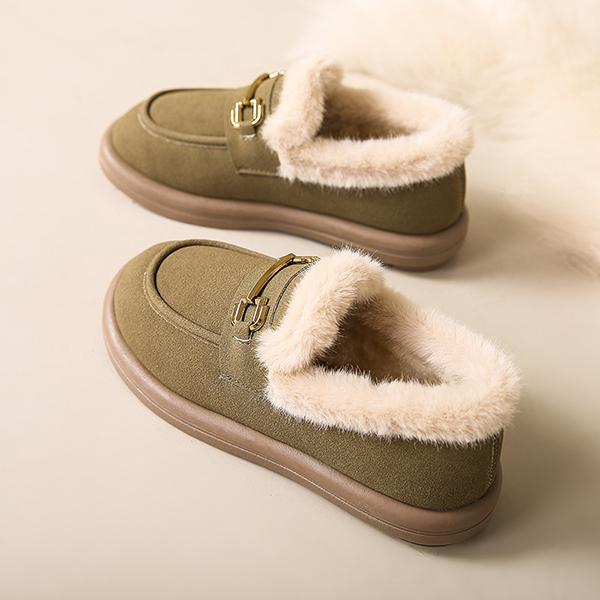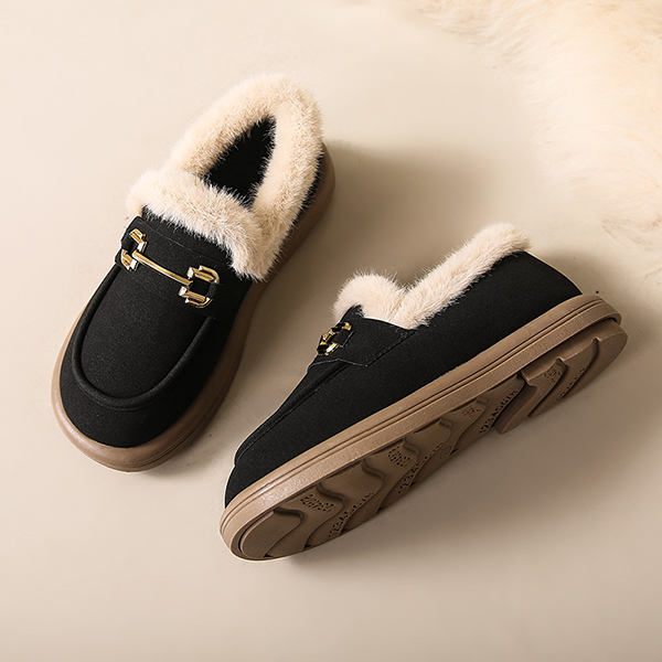 Last Day 50% OFF-Women's Metallic Buckle Soft Sole Flat Warm Lined Shoes
